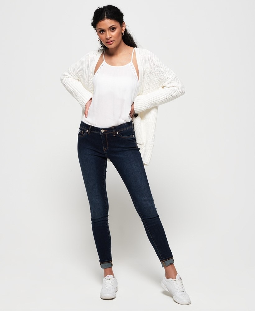 Superdry women's Alexia jeggings. Update your wardrobe essentials with the Alexia jeggings. These jeggings feature a classic zip and button fly fastening, two back pockets, one coin pocket and two faux front pockets. Completed with a Superdry logo badge on the coin pocket and a Superdry logo patch on the back. Skinny Fit. Fitting where they touch, as that’s what they’re designed to do. With a hint of stretch just to make sure, they’re cut to cling close, right from your seat through the thigh and down to a narrow ankle – the ultimate rock star look.