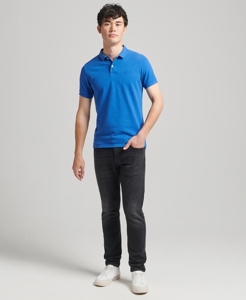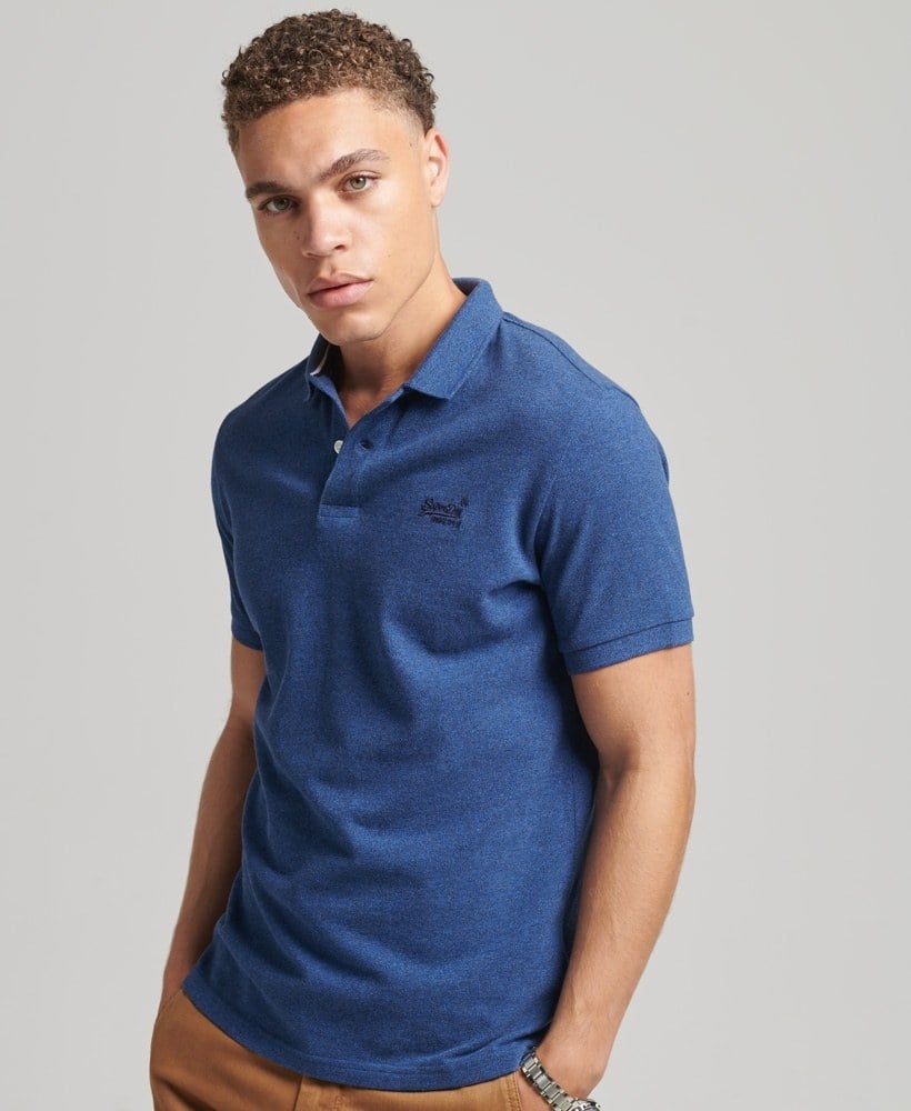 A classic polo spices up your wardrobe with a vintage spirit. It's an old school staple for a reason - pair it with jeans and trainers for an instant look with timeless style. Relaxed fit: the classic Superdry fit. Not too slim, not too loose, just right. Go for your normal size, Organic cotton, Half-button fastening, Short sleeves, Embroidered Superdry logo. Made with organic cotton grown using natural rather than chemical pesticides and fertilisers. The healthier soil this creates uses up to 80% less water which is better for our planet and for the farmers who grow it.