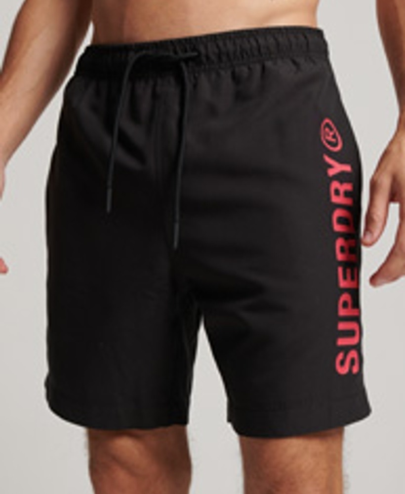 Put your personality into practical wear with these eye-catching shorts. The Core Sport swim shorts are a functional way to rock a sporty style whether by the water or on the beach. Rock the colourful logos you love with the iconic Superdry branding for a bold statement at any poolside party. Standard fit – the classic Superdry fit. Not too slim, not too loose, just right. Go for your normal size, Elasticated waistband with drawcord adjustment, Two side pockets, 17'' length, Printed Superdry branding, Printed Code logo, Mesh lining. Please note, due to hygiene reasons we are unable to offer an exchange or refund on swimwear/underwear if the hygiene seal is not intact or any labels have been broken or removed. This does not affect your statutory rights.