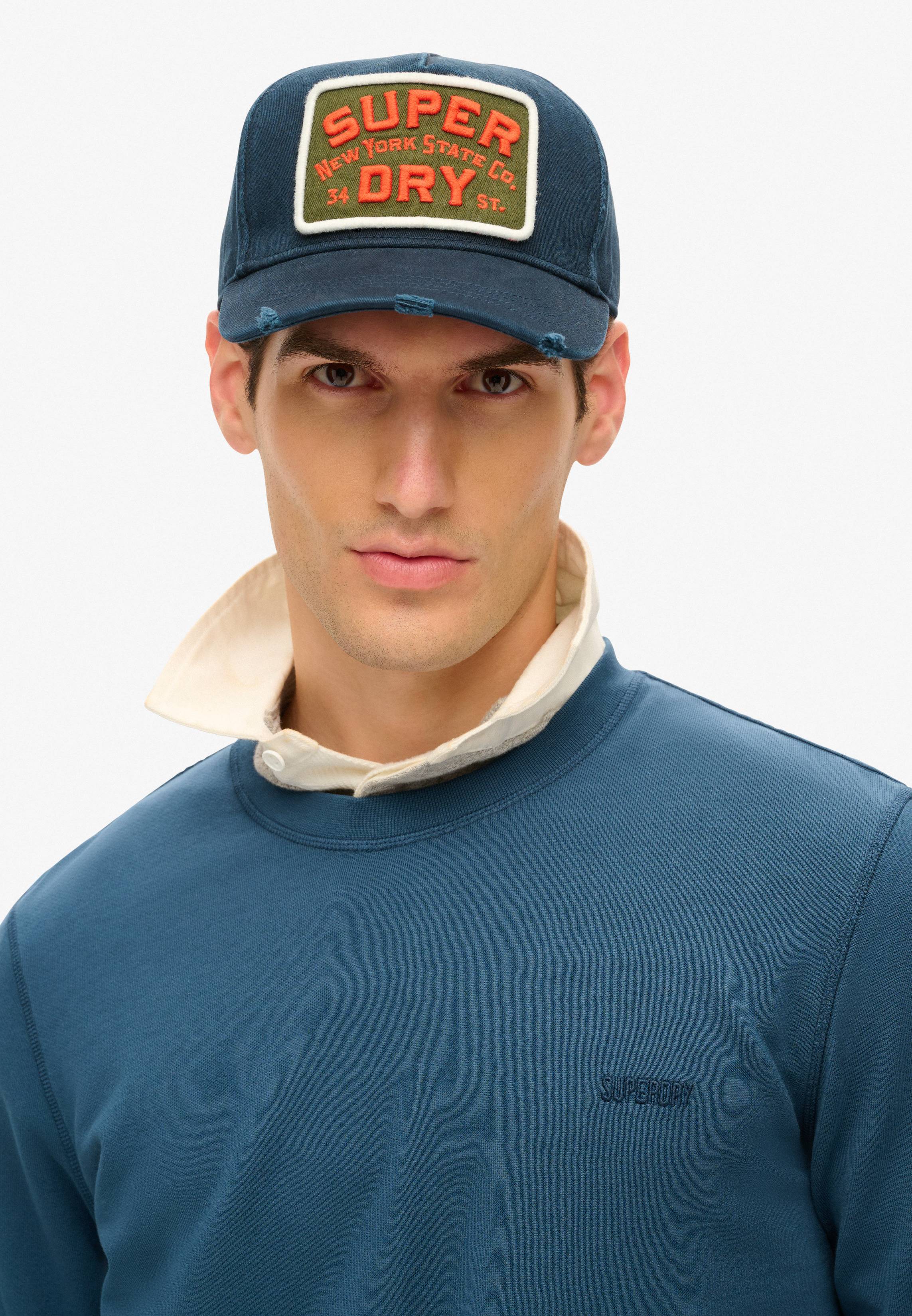 A perfect way to top off your outfit, the Graphic Trucker cap will inject that authentic worker look into your style. With a classic design with a vintage wash and localised distressing, this cap is an excellent way to bring your personality to a look. Classic design trucker cap, Six-panel design, Vintage finish, Distressed curved peak, Adjustable strap back, Embroidered logo patch.