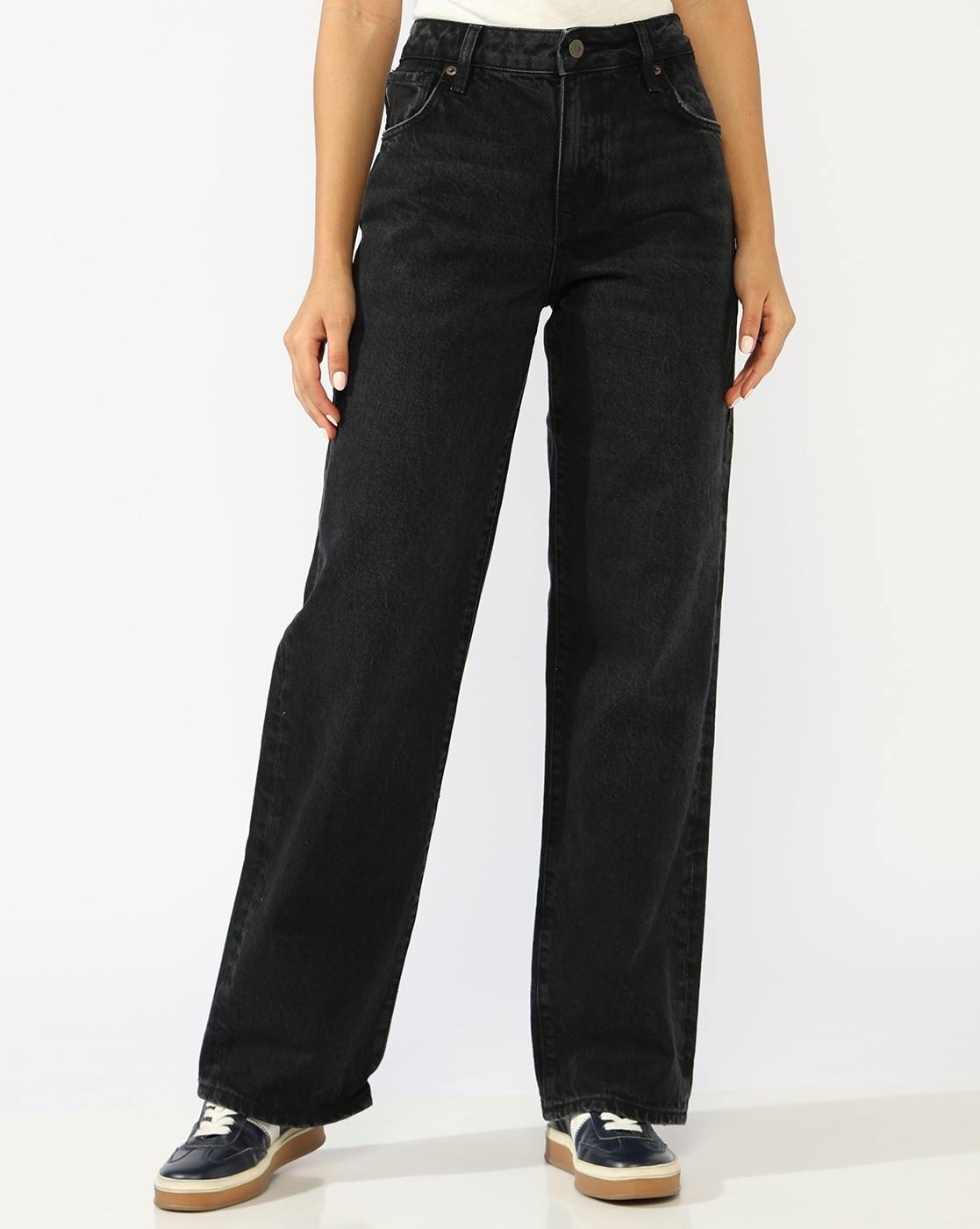 These wide-leg jeans feature a mid-rise waist and vintage-inspired wash – your go-to for a retro denim look.