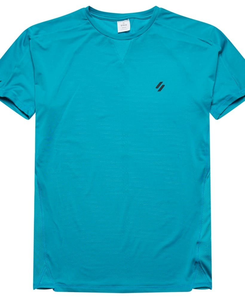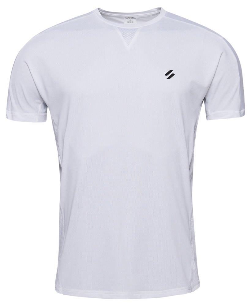 We've engineered this comfortable top to fit your body and maximise the way you move. Featuring innovative fabric technology to help keep you cool, you'll be able to build up a sweat easily and stay mobile with this reliable piece from our high-quality Run range. V-pattern below neck, Raglan sleeves, Print logo on the chest, Printed Superdry logo on the right sleeve, Mesh back with printed detailing, Breathable fabric - Allows air and moisture to pass through the material to help keep you comfortable, Moisture-wicking - Helps to regulate your body temperature by drawing perspiration away from the body and allowing moisture to disperse from the outer face of the fabric.