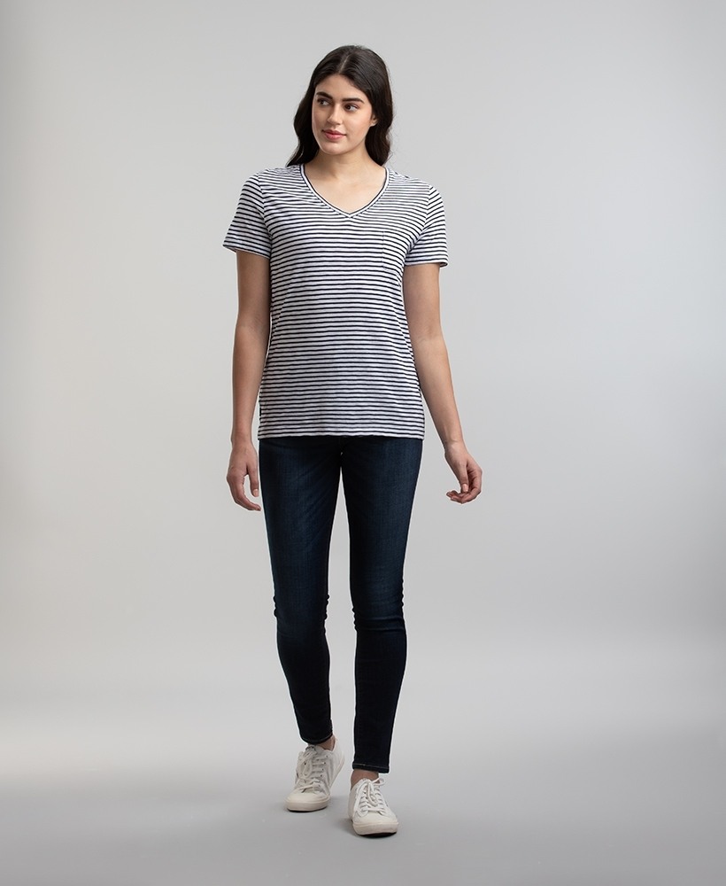 Classic, comfortable, and versatile. Whether you're wearing this tee by itself or under a jacket, you can dress your best this season. Relaxed fit – the classic Superdry fit. Not too slim, not too loose, just right. Go for your normal size, V-Neck, Short sleeves, Right breast pocket, Organic cotton, Embroidered logo, Signature Superdry tab. Made using a blend of organic cotton and TENCEL™. Organic cotton is grown using natural rather than chemical pesticides and fertilisers. The healthier soil this creates uses up to 80% less water which is better for our planet and for the farmers who grow it. TENCEL™ Modal fibres are produced by an Eco Soft technology - an environmentally responsible choice.