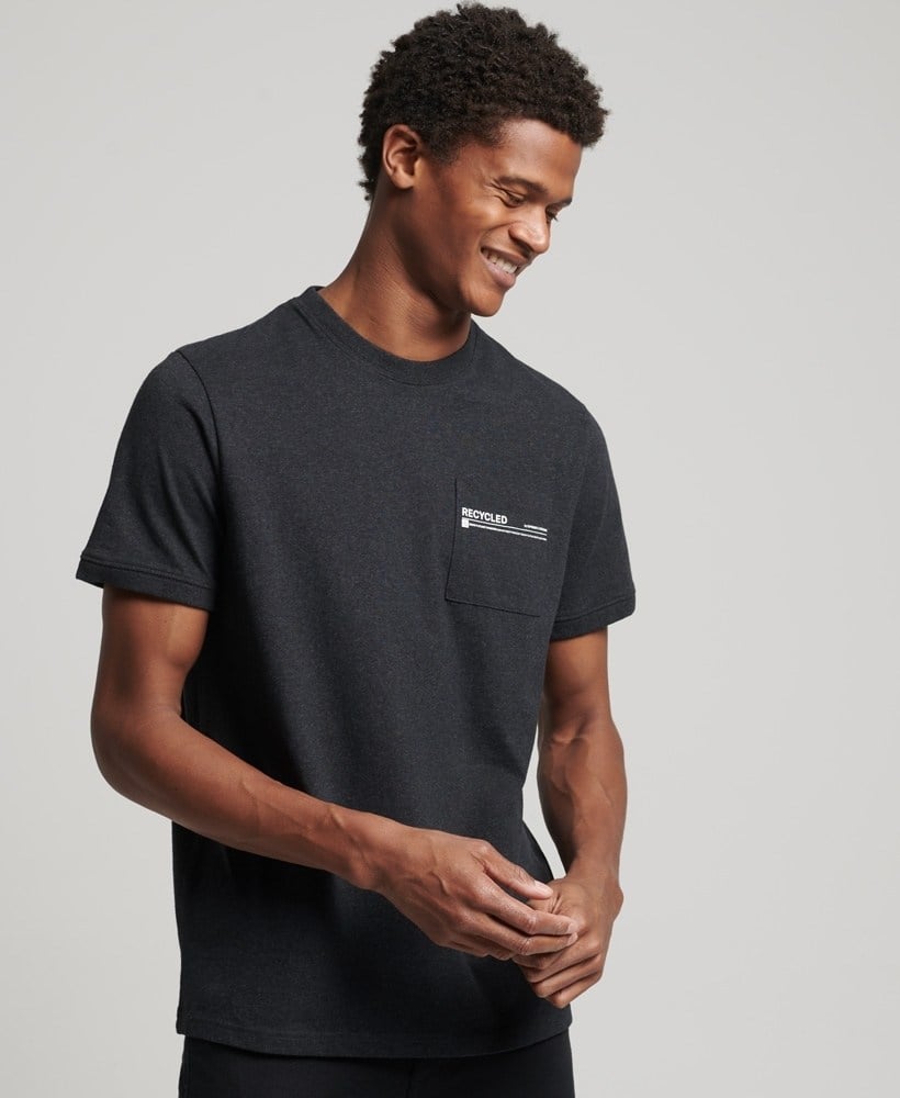 The Superdry Studios recycled collection is made using 100% recycled materials, from threads to fabric and labels, a blend that feels soft against your skin. Consciously designed to help protect the planet, treat it with care. We hope you enjoy wearing it as much as we enjoyed creating it. Protect our planet proudly and stay stylish with our Studios Recycled standard t-shirt. This sustainably sourced tee is here to stay this season, pairing to create a perfect essential fit. Relaxed fit – the classic Superdry fit. Not too slim, not too loose, just right. Go for your normal size, Crew neck, Short sleeves, Printed recycled logo, Classic Superdry logo patch.