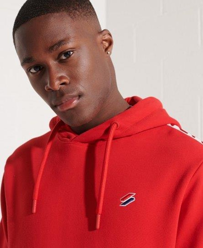 The Code logo Tape hoodie features a classic overhead design, panelled branding, drawstring hood, front pouch pockets and a signature embroidered logo. Loose Fit – where comfort meets cool, a stylish loose cut makes this a must-have shape, Overhead design, Drawstring hood, Ribbed side panels, Ribbed detailing, Front pouch pocket, Panel branding, Signature embroidered logo, Loopback lining.
