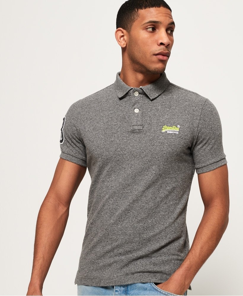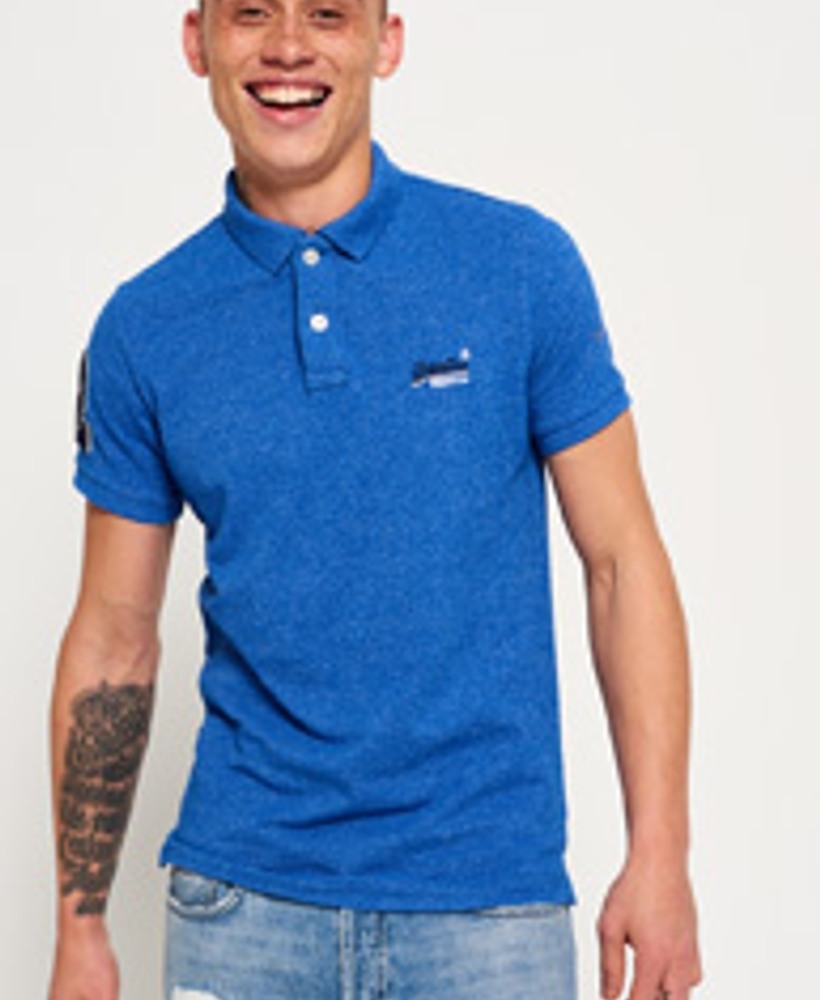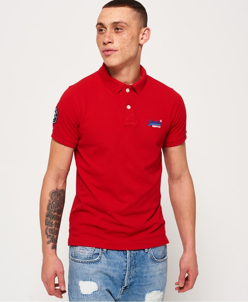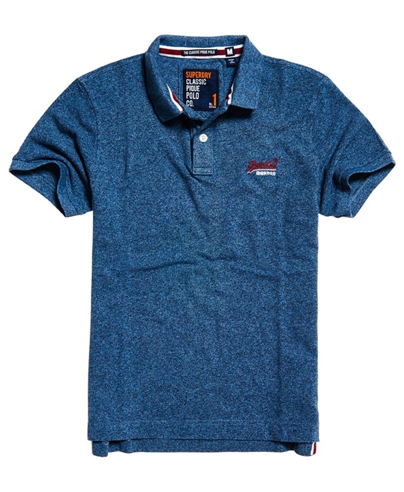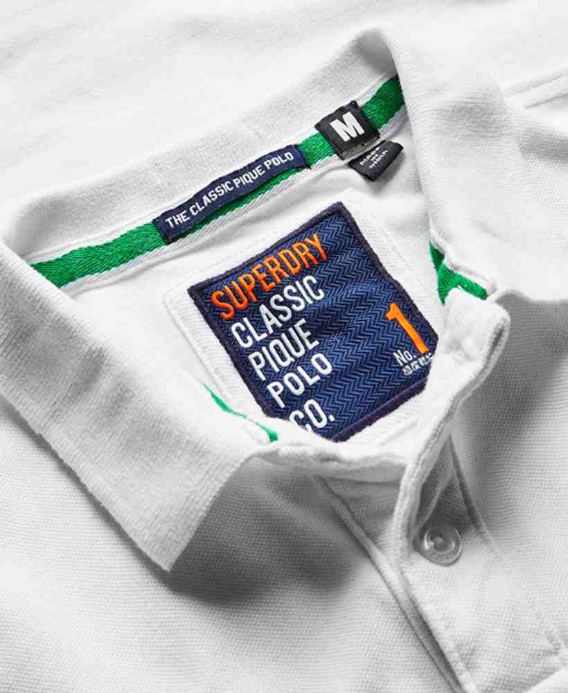 Superdry men’s Classic Pique polo shirt. A classic cut pique polo shirt featuring short sleeves, a two colour embroidered Superdry logo on the chest, split side seams and two button fastening. The polo shirt is finished with an embroidered Superdry logo patch on the sleeve.Model wears: Medium Model height: 6’ 2” (188cm) Model chest size: 37" (93cm)