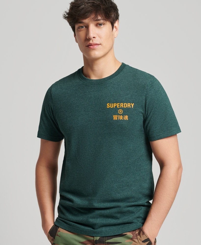 Featuring a classic tee with a comfortable, familiar aesthetic, it's a great way to build your casual go-to looks. Wear them with jeans for an instant casual look, or beneath a shirt or jacket for those outdoor events. Relaxed fit – the classic Superdry fit. Not too slim, not too loose, just right. Go for your normal size, Ribbed crew neck collar, Short sleeves, Printed logo on left breast.