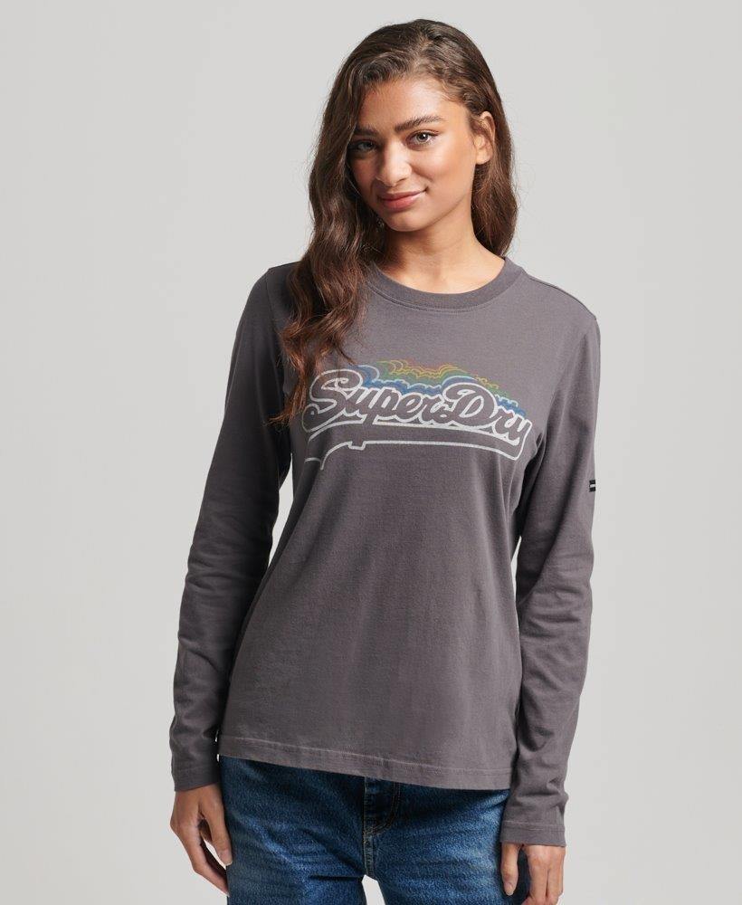 The Vintage Logo Rainbow Long Sleeve Top is your classic essential for all year round. Layer up or on it's own, this piece is here to keep you in style and cosy. Relaxed fit – the classic Superdry fit. Not too slim, not too loose, just right. Go for your normal size, Ribbed crew neckline, Long sleeves, Printed rainbow logo.
