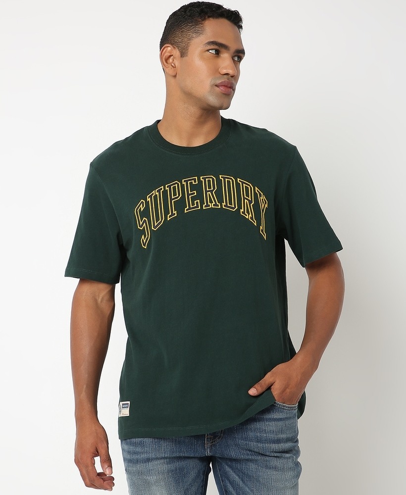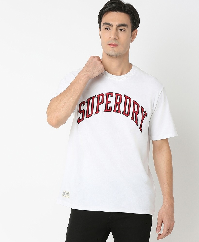 Superdry men's Vintage embroidery t-shirt from the Orange Label range. This simple crew neck t-shirt features an embroidered version of the iconic Superdry logo on the chest and is finished with a Superdry logo tab on one sleeve. Slim fit